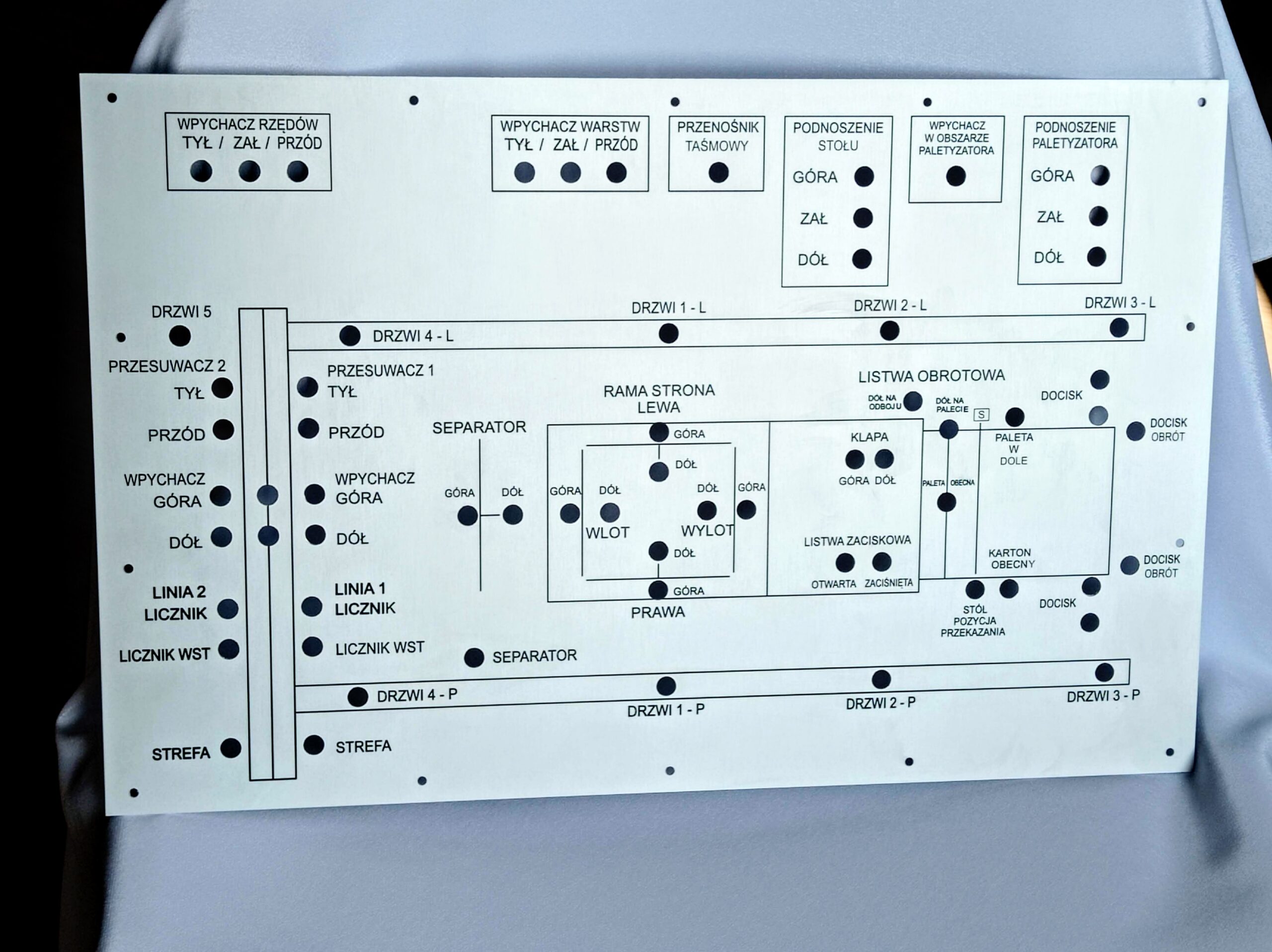Panel czołowy do maszyn przemysłowych lub innych urządzeń.
